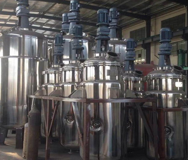 反應(yīng)鍋由鍋體、鍋蓋、攪拌器、電加熱油夾管、支承及傳動(dòng)裝置、軸封裝置、溢油槽等組成,并配有電加熱棒及測(cè)溫、測(cè)壓表。